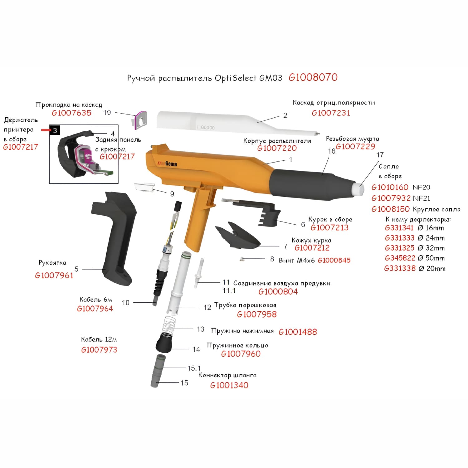 Компания «Техноколор» предлагает оригинальные и совместимые запчасти для установок Gema — ведущего производителя оборудования для порошковой и электростатической покраски.